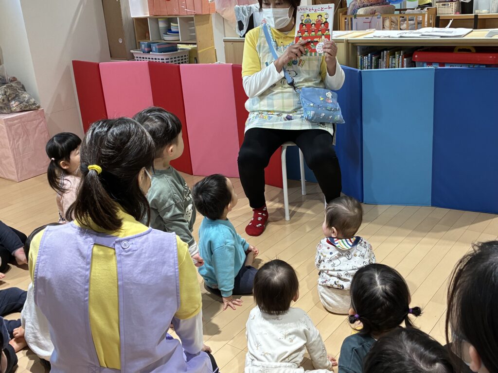 今日は園長先生からひな祭りの絵本を読んでもらいました。