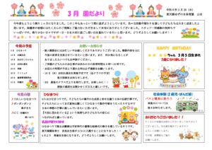 東天満ゆずのき保育園の3月の園だよりです🌷 いよいよ今年度も最後の月となりました! 園見学も行っておりますので、お気軽にお問い合わせください😄